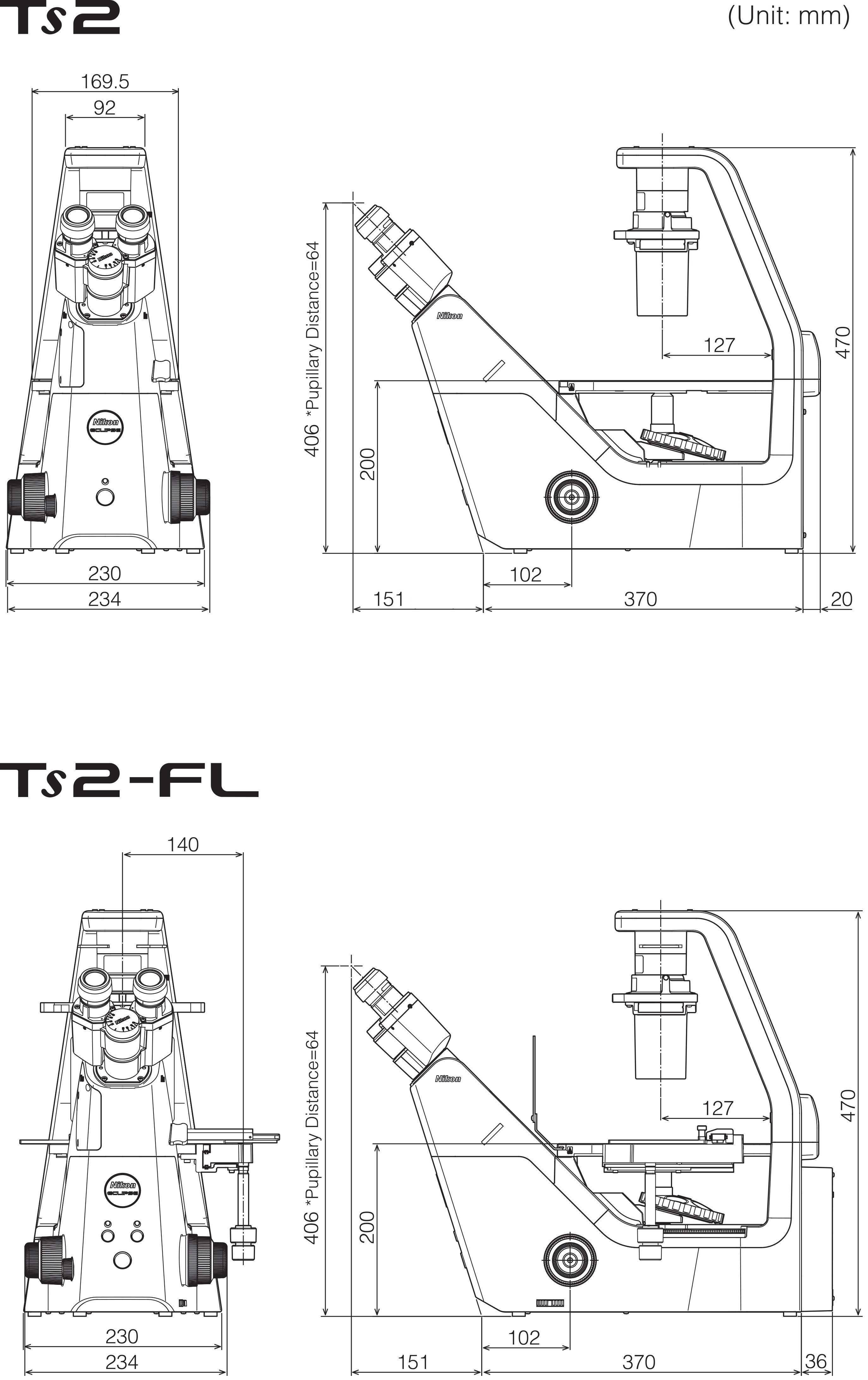 镜筒 | Ts2和Ts2-FL:俯角:45度;瞳距调整范围:50-75mm,Siedentopf型;可附加相机端口;目镜/端口:100/0:0/100 | |