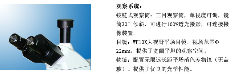 目镜筒 | 30˚倾斜,瞳距调节范围53~75mm. | |
