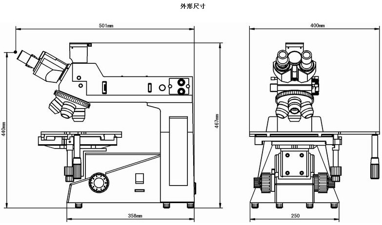 载物台机械式载物台,外形尺寸:280mmX270mm,移动范围:横向(X)204mm,纵向(Y)204mm | ||