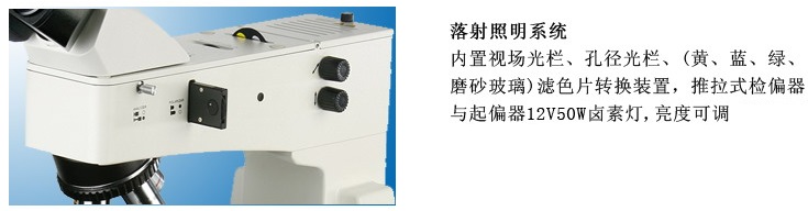 落射照明系统 | 12V50W卤素灯,亮度可调 |