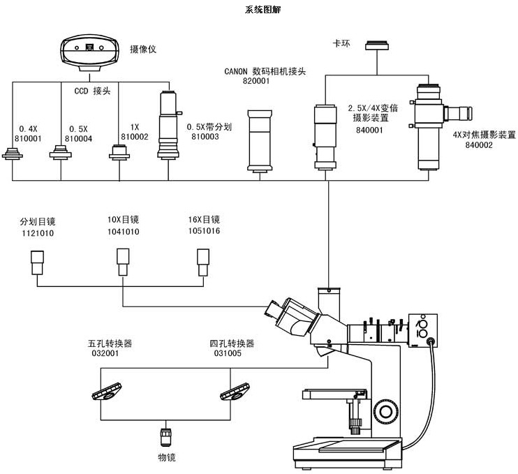 系统组成 | 电脑型(WMJ-9330C) 1.金相显微镜 2.适配镜 3.摄像器(CCD) 4.计算机(选购) |