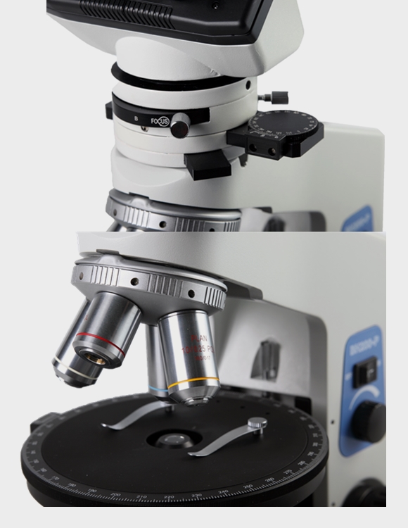 采用推拉式检偏镜插口,内置勃氏镜,转盘式切换机构,中心、焦距可调。配置360°旋转专业刻度检偏插板,0°、90°、180°、270°四挡刻度。