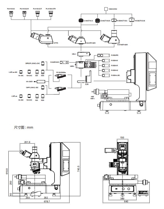 起偏镜插板,360°旋转式检偏镜插板 ;反射用干涉滤色片组 ;高精度测微尺 ;DIC 组件 ;标定片