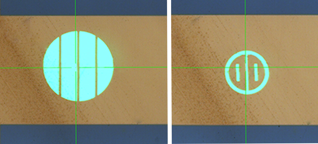 独立的裂像光源控制器,可根据样品不同背景进行光源亮度调节,清晰准确显示最佳焦面。有两种裂像图案可供选择,并随意切换。