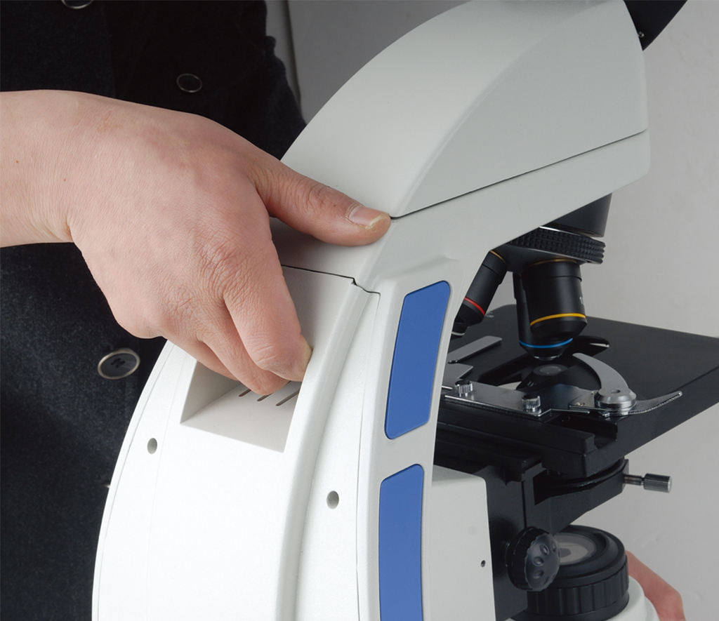 镜体后侧设计了搬动显微镜时的提手位置,确保显微镜移动时,安全,稳固。